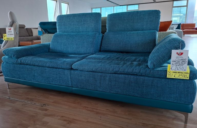 Divano 3 posti cm 220 x 100/120 p. In tessuto con schienali traslanti e poggiatesta reclinabili. Euro 2450,00Sconto 25%Euro 1850,00 IVA TRASPORTO (Bologna e provincia) INCLUSI